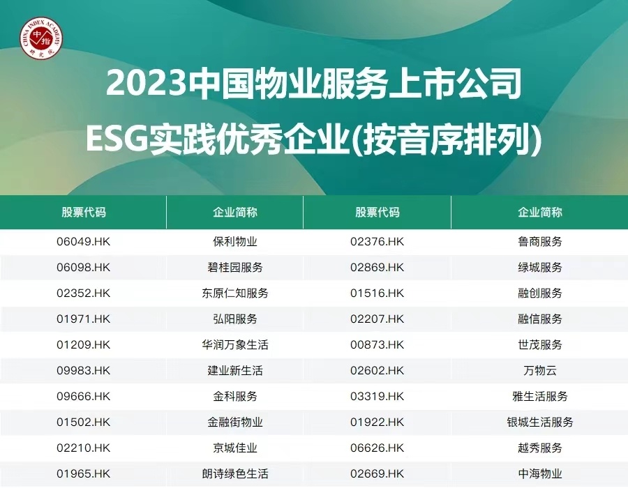 會上發(fā)布了“2023中國物業(yè)服務上市公司ESG測評研究報告”。中指研究院、中信證券研究部、北京秩鼎公司聯(lián)合對物業(yè)管理行業(yè)ESG體系開展研究與測評,對59家物業(yè)服務上市公司2022年度ESG報告表現(xiàn)進行了測評研究,將ESG報告評分按照總體得分排序。建業(yè)新生活榮獲“2023中國物業(yè)服務上市公司ESG實踐優(yōu)秀企業(yè)”。
