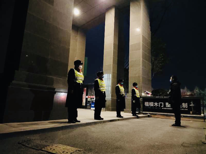 昏黃的燈光,寂靜的夜晚,雖然無人注視,但建業(yè)物業(yè)禮兵團(tuán)隊(duì)依然隊(duì)列整齊、嚴(yán)陣以待。