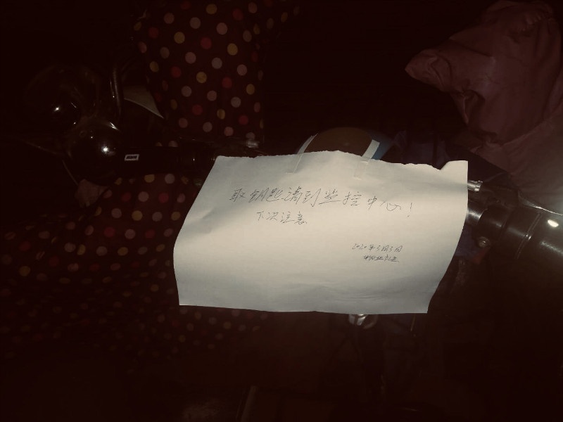 信陽建業(yè)森林半島禮兵中隊(duì)長王松夜晚巡邏時發(fā)現(xiàn)一輛電動車的鑰匙忘記拔了,他便替業(yè)主收起鑰匙,并留下字條,然后又繼續(xù)進(jìn)行日常的巡邏。