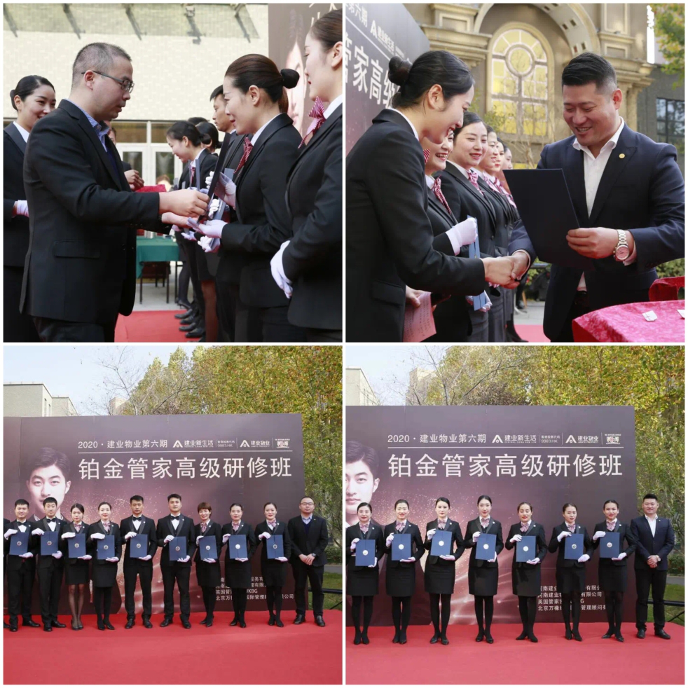 結(jié)業(yè)儀式上,建業(yè)新生活集團(tuán)副總裁、物業(yè)服務(wù)事業(yè)部總經(jīng)理汪維清,建業(yè)新生活集團(tuán)物業(yè)服務(wù)事業(yè)部綜合管理部總經(jīng)理、建業(yè)物業(yè)助理總經(jīng)理張悅,英國(guó)管家協(xié)會(huì)大中華區(qū)執(zhí)行董事宋薇為36位學(xué)員頒發(fā)國(guó)際鉑金管家證書(shū)及徽章,這一刻,鉑金品質(zhì),榮耀綻放,伴隨著熱烈的掌聲,建業(yè)物業(yè)第六期鉑金管家培訓(xùn)圓滿落幕。