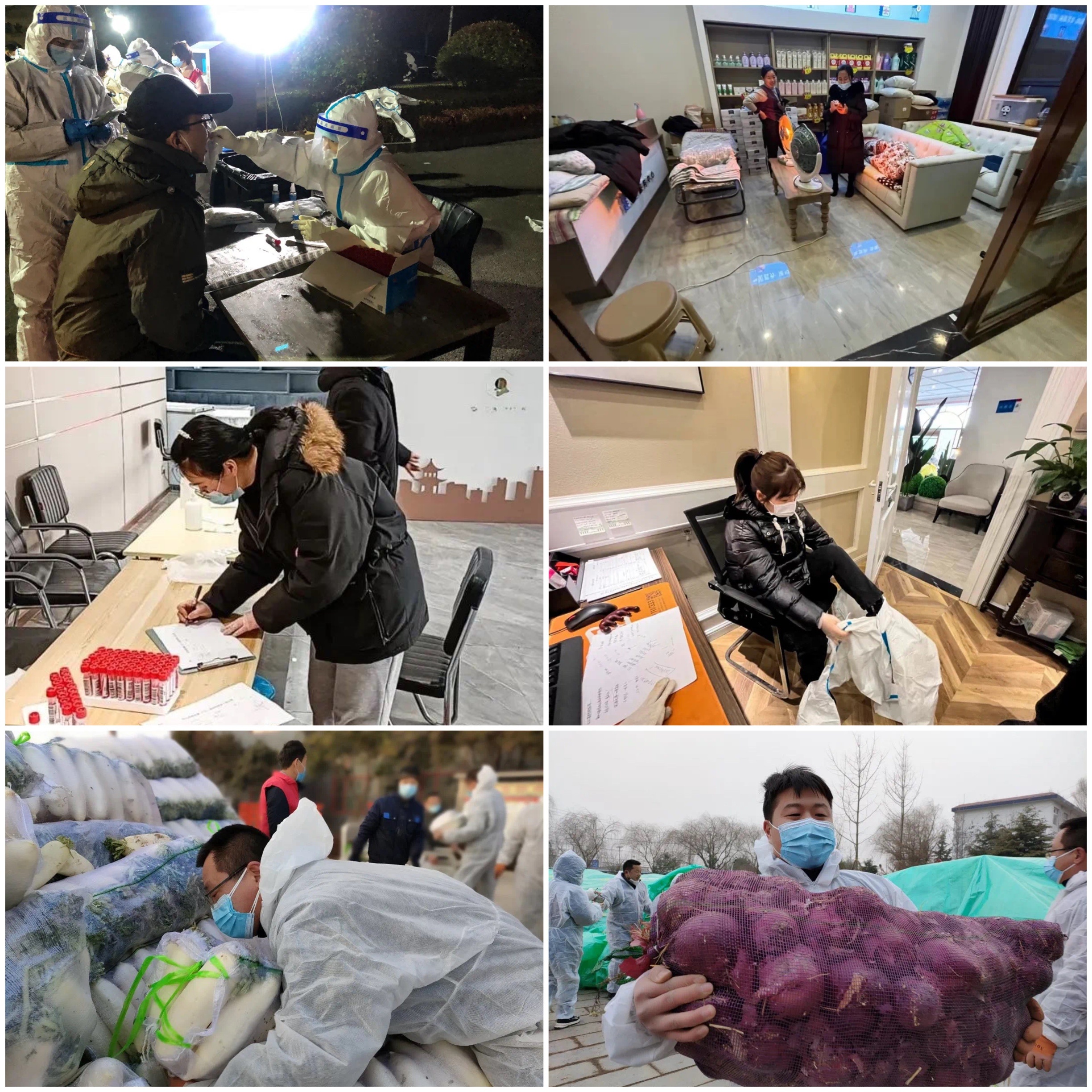 1月16日,小區(qū)已進(jìn)行十一輪核酸檢測(cè)。物業(yè)全員都處于24小時(shí)待命狀態(tài),有的同事餓了,習(xí)慣性地從箱子里拿出一桶泡面;有的同事困了,上一秒還在說(shuō)話,下一秒已經(jīng)坐著睡著了……此類種種,已成為團(tuán)隊(duì)所有人的日常。片區(qū)經(jīng)理鄒錕在工作之余為大家做飯,簡(jiǎn)單的一碗面卻讓大家邊吃邊流淚,因?yàn)槟艹陨弦豢跓岷醯那逅竺?,此刻已是一件奢侈的事…?br />   防控持續(xù)升級(jí),建業(yè)物業(yè)人不斷加強(qiáng)園區(qū)防疫工作,同時(shí)盡全力保障業(yè)主正常生活,每一位物業(yè)人都在拼盡全力支撐。園區(qū)封控,生活垃圾無(wú)法正常清運(yùn),趙占營(yíng)立即決定在地下車庫(kù)搭建臨時(shí)垃圾存放點(diǎn),同時(shí)又與社區(qū)和環(huán)衛(wèi)局溝通清運(yùn)垃圾事宜,禹州·新龍華庭成為當(dāng)?shù)氐谝粋€(gè)順利將垃圾清運(yùn)出去的封控小區(qū)。